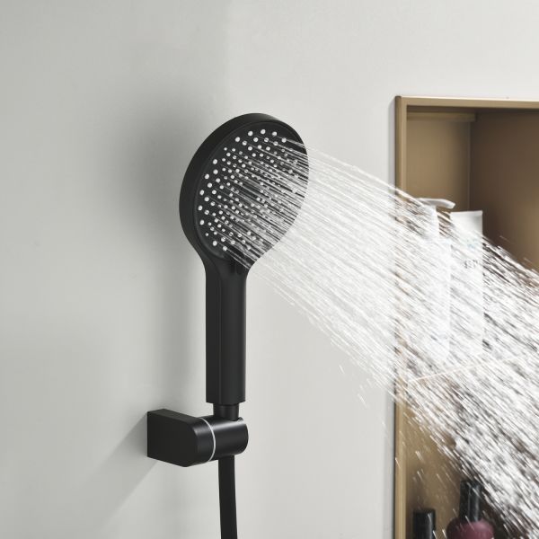 Душевая стойка производителя Black&White черного матового цвета. Корпус изделия изготовлен из сантехнической латуни, материал высокоресурсный и безопасный для здоровья. Управление потоками воды осуществляется с помощью керамического картриджа повышенной пропускной способности.Из потребителей на стойке установлен верхний душ, ручная лейка с режимами и излив, интегрированный в фронтальную часть корпуса. Для выбора режима работы установлен поворотный механический дивертор цилиндрической формы с насечками на корпусе для удобства использования мокрыми руками.Простые геометрические линии продукта гармонично встроятся в лаконичные интерьеры ванной комнты.