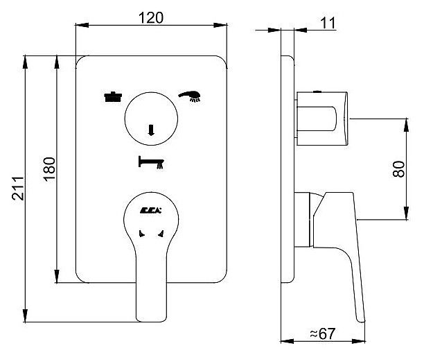 Смеситель для ванны и душа E.C.A предназначен для подачи горячей и холодной воды в ванных помещениях. Однорычажный тип управления позволяет очень быстро и плавно регулировать подачу воды одной рукой. Изделие выполнено из латуни, которая отличается прочностью, долговечностью и устойчивостью к перепадам температуры.Внутренняя часть в комплект поставки не входит.Особенности:
