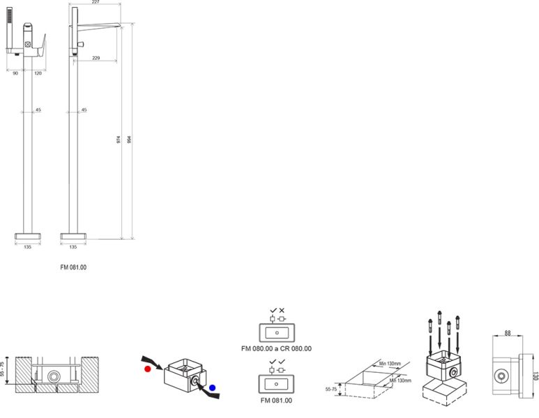 - подходит: к отдельно стоящим ваннам