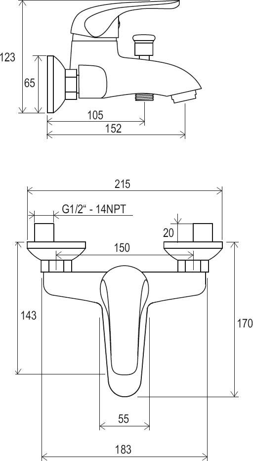 - межосевой размер смесителя : 150 мм