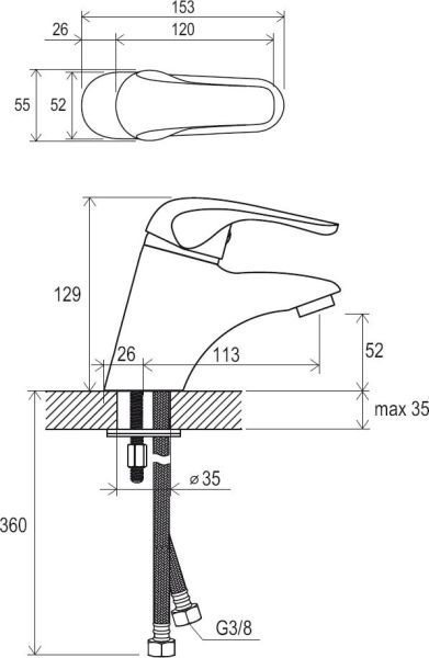 - соединительные шланги: гибкий 350 мм, диаметр G3/8