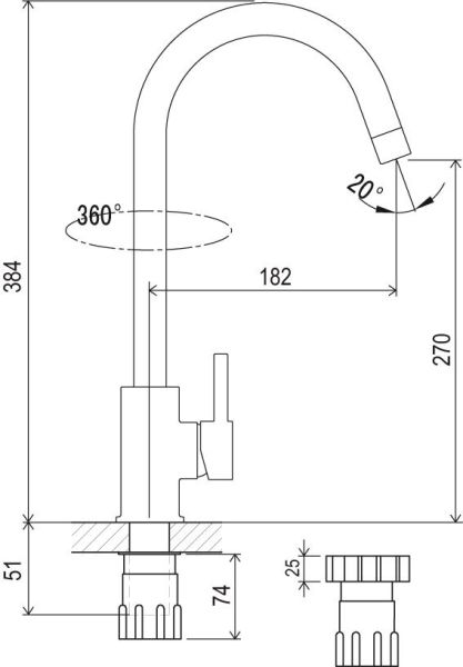 - исполнение: 360° - вращение излива без ограничений