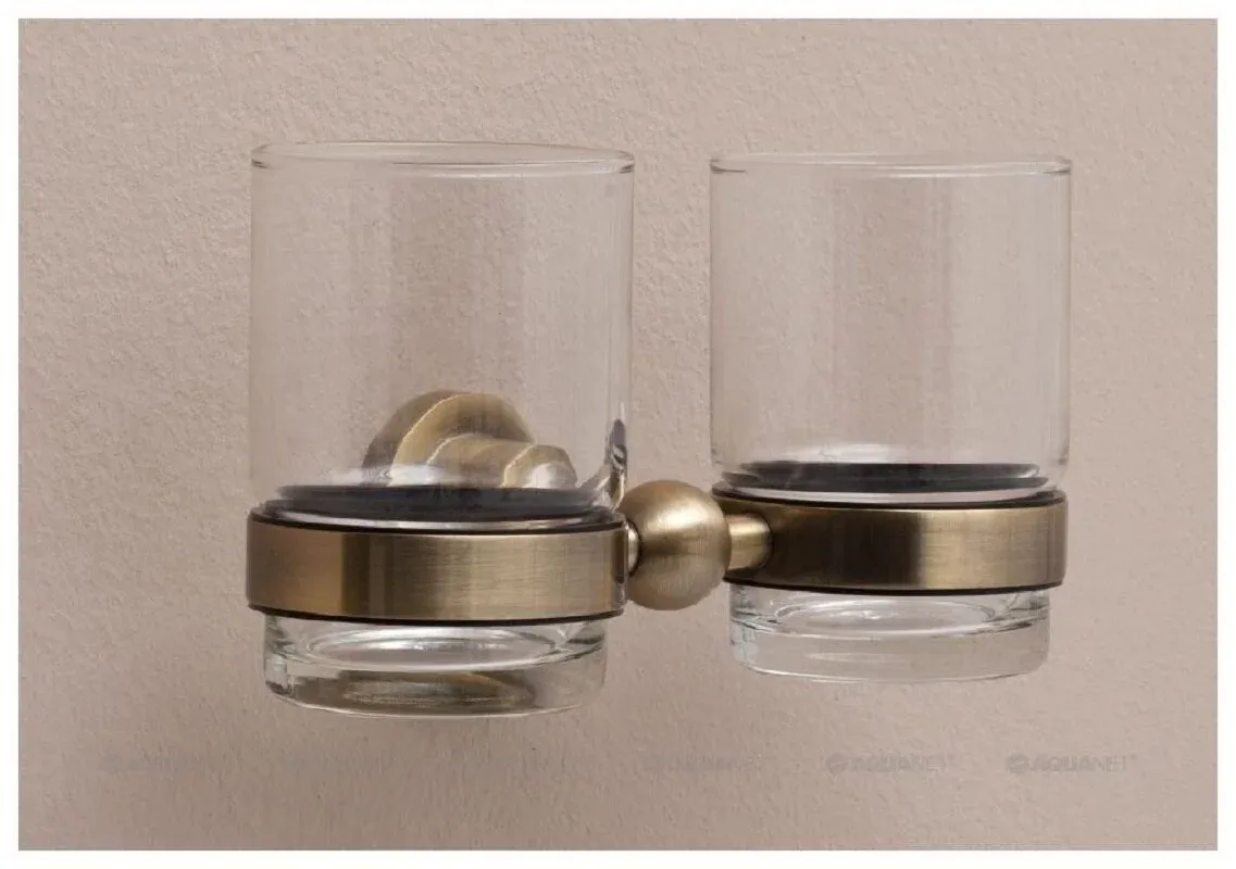 Стакан двойной с держателем Aquanet 189266 бронза
