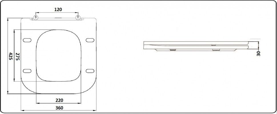Сиденье из дюропласта, с плавным опусканием крышки (Микролифт), быстросъемное.