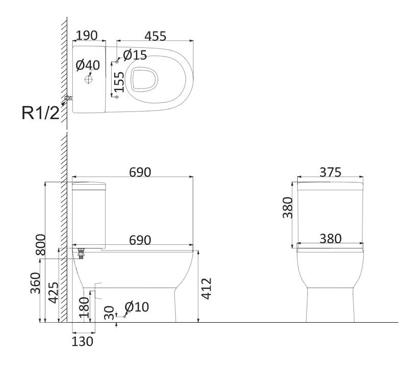 - Прилегание унитаза к стене:с отступом