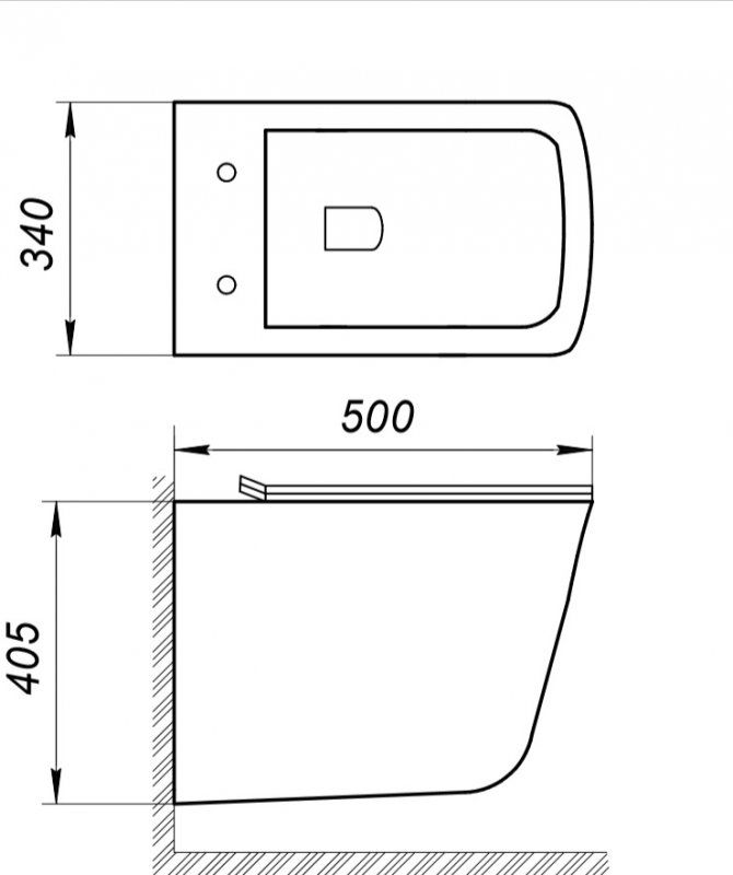 • Прилегание унитаза к стене: