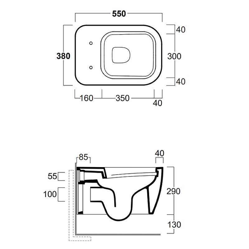 - Укороченный унитаз:нет