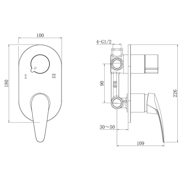 • 2-позиционный картриджный переключатель (угол поворота 120°)